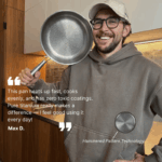 Effortless Cleaning – No seasoning required like cast iron. Titanium repels stains. resists discoloration. and is dishwasher-safe for quick and easy maintenance.