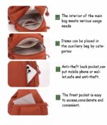 Scientific partition storage system: equipped with multiple compartments. anti-theft hidden pockets. and multiple functional pockets. the storage is well-organized.