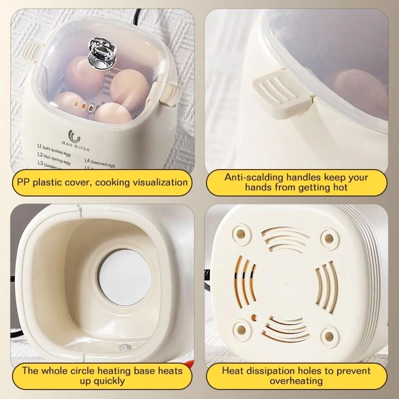⭐Double-layer design,the bottom can hold 4 eggs, and on top you can steam other foods.