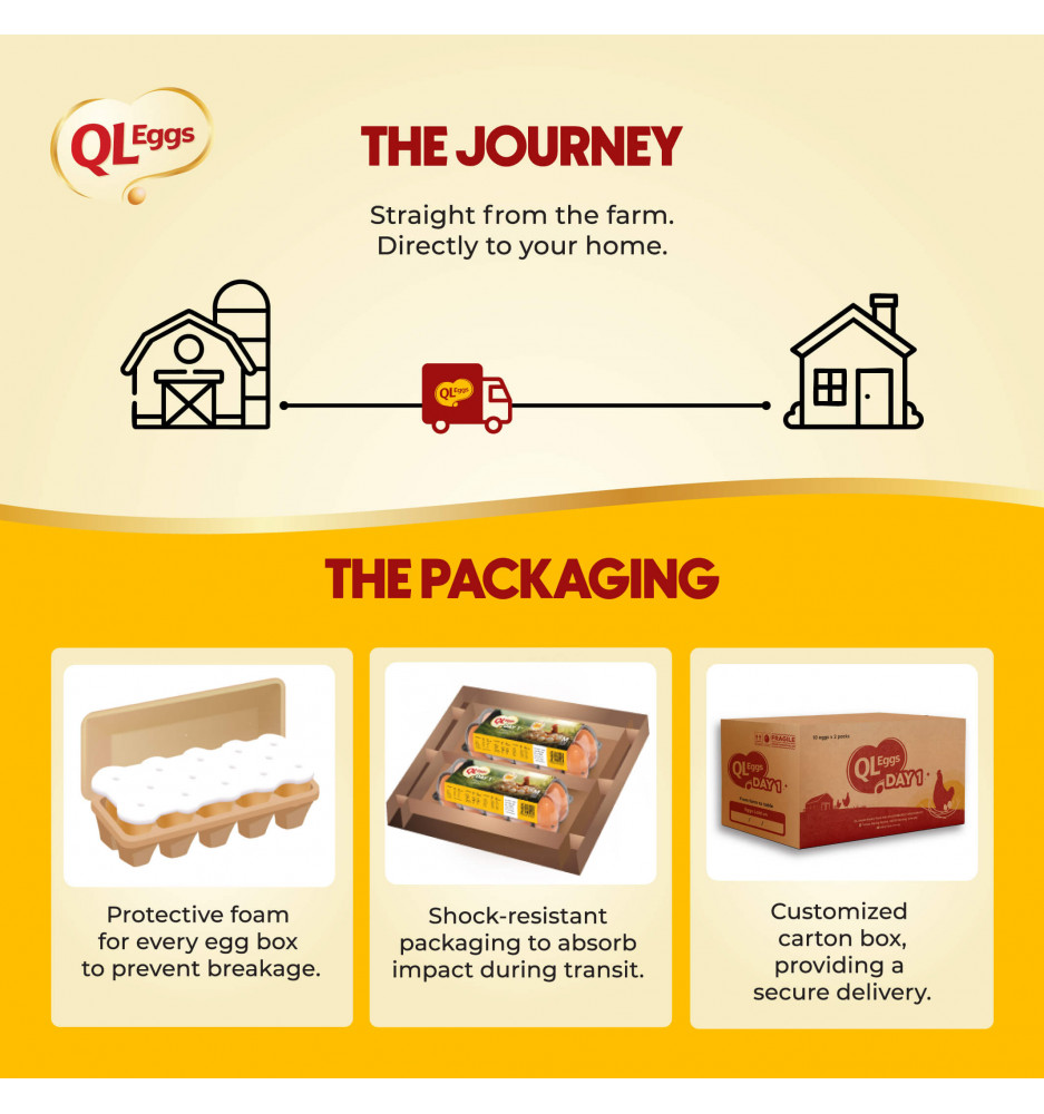 Our QL Eggs Day 1 Omega 3 & DHA are shipped on the very day they are laid. ensuring unparalleled freshness and loaded with essential nutrients such as Omega-3. DHA. Vitamin B12. and Vitamin E. 🥚🐔