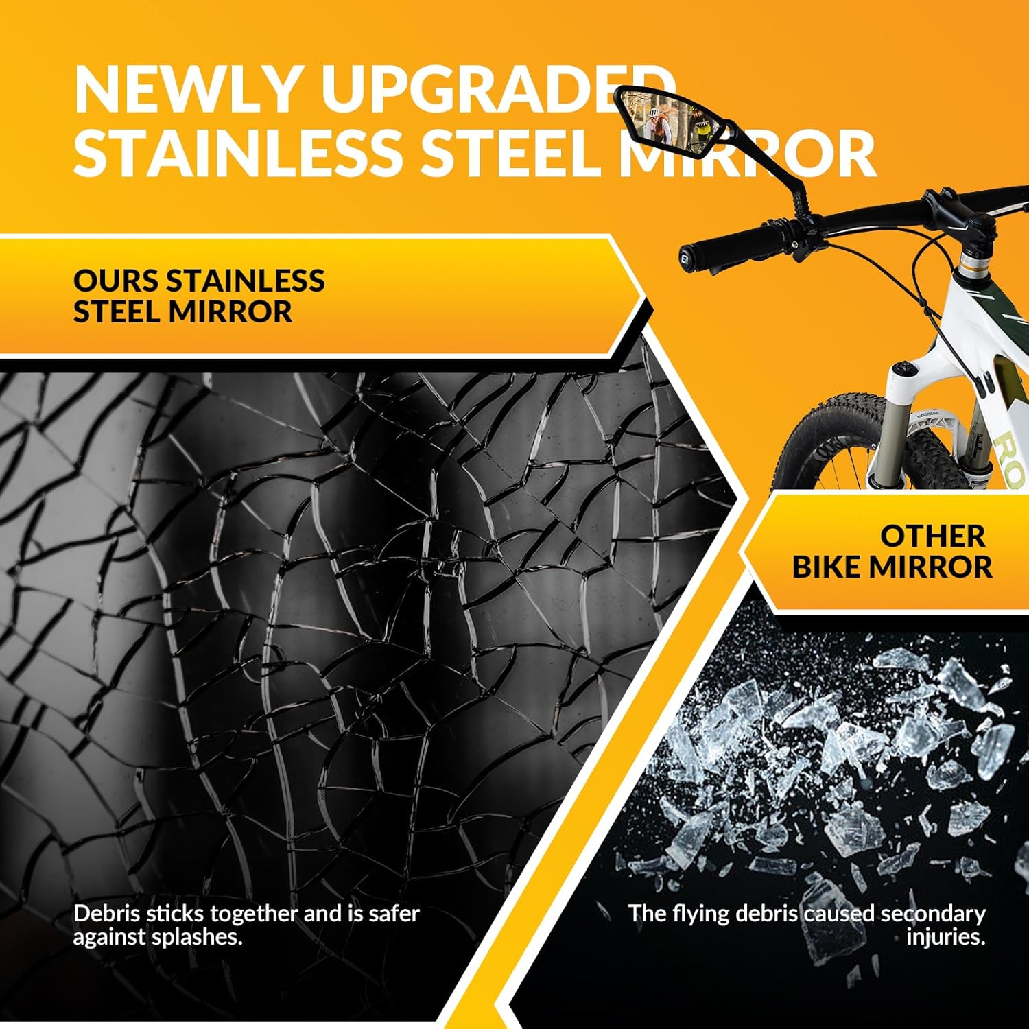 A polished mirror surface delivers a clear, wide rear view—helping you stay aware of traffic behind without turning your head. Crafted with durable stainless steel, it offers reliable impact resistance for everyday riding confidence.